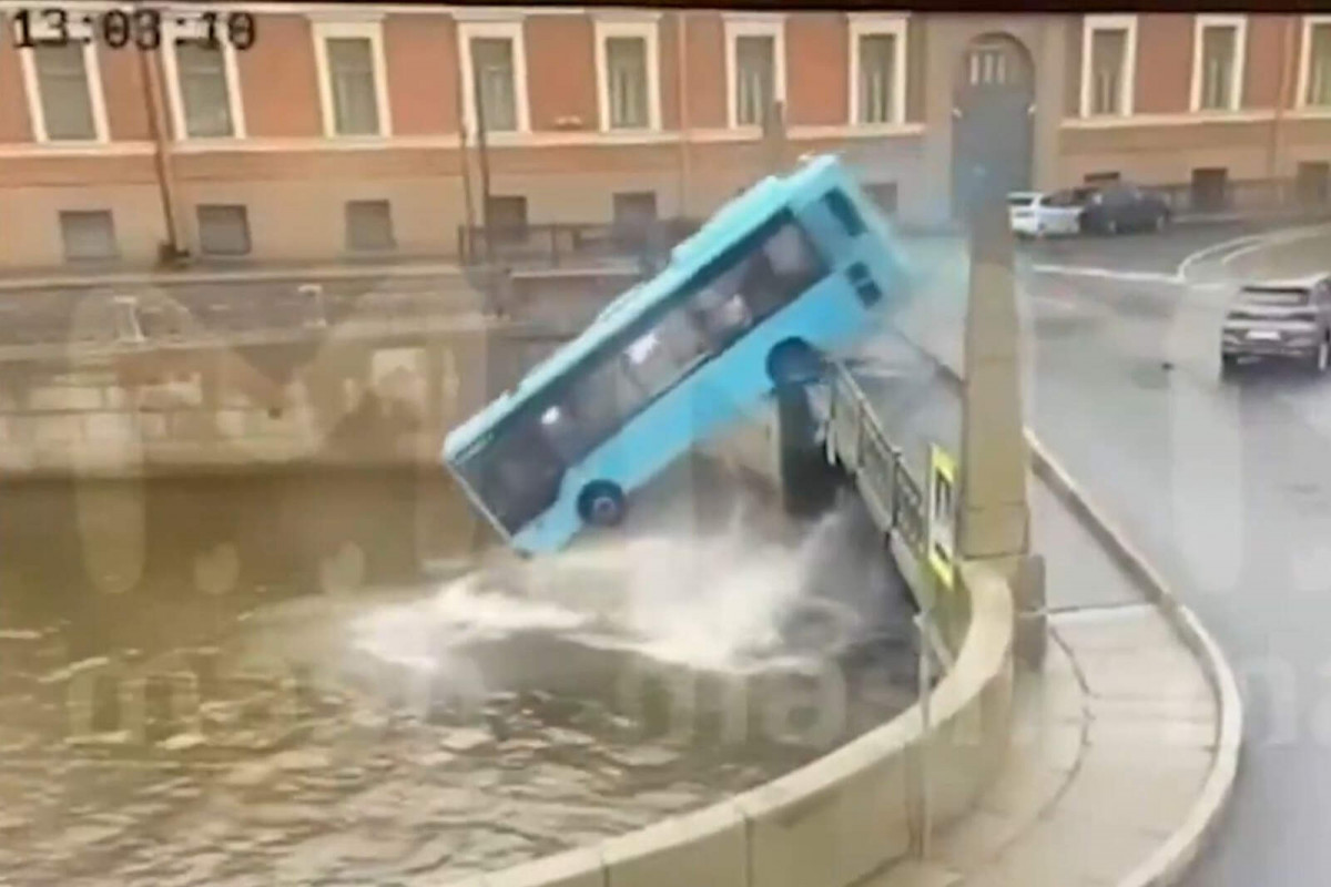 En el vídeo se puede ver cómo el autobús pierde el rumbo en un primer momento y después pega un volantazo brusco a la derecha, llegando a arrollar frontalmente a otro coche, antes de traspasar la valla y acabar en el agua del río Moika.