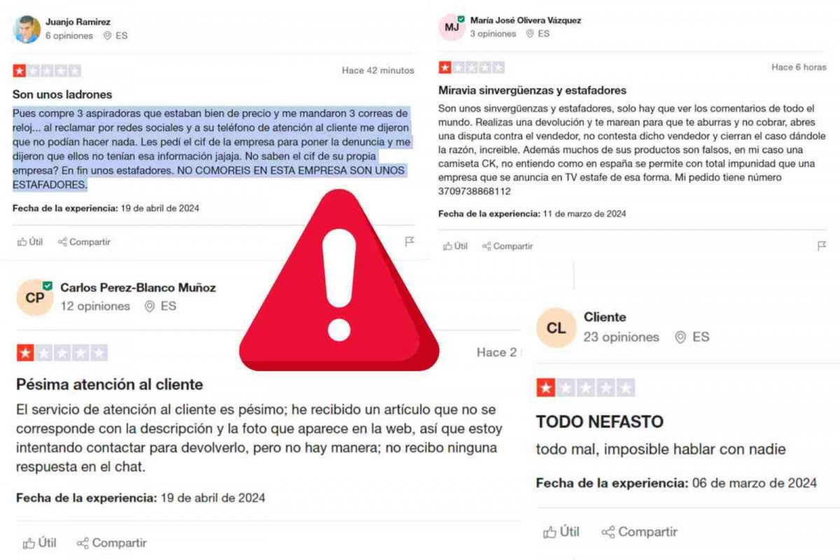 La plataforma recibe cada día varias reseñas negativas. Mirando Trustpilot, a fecha de 19/4/2024 a las 17:00 horas, en solo 24 horas Miravía ha recibido 9 calificaciones de un punto de usuarios que acusan a la web de malas praxis. Casi todas las críticas tienen relación por la atención al cliente post venta.
