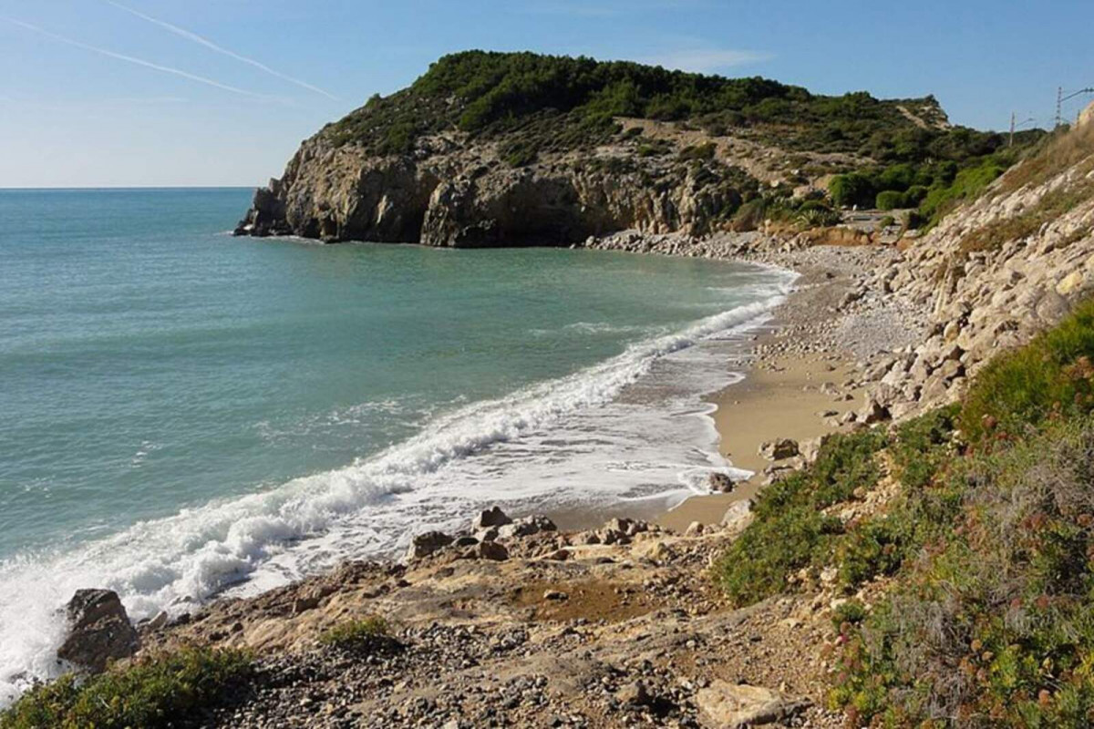 Playa de l’Home Mort en Sitges destaca por su ambiente tranquilo y su línea costera rocosa, siendo una de las joyas ocultas de la región.