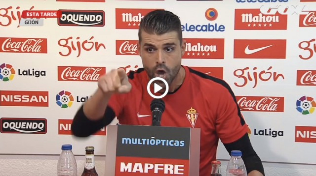 Explosiva reacción del portero del Sporting "Pichu" Cuéllar por una información falsa