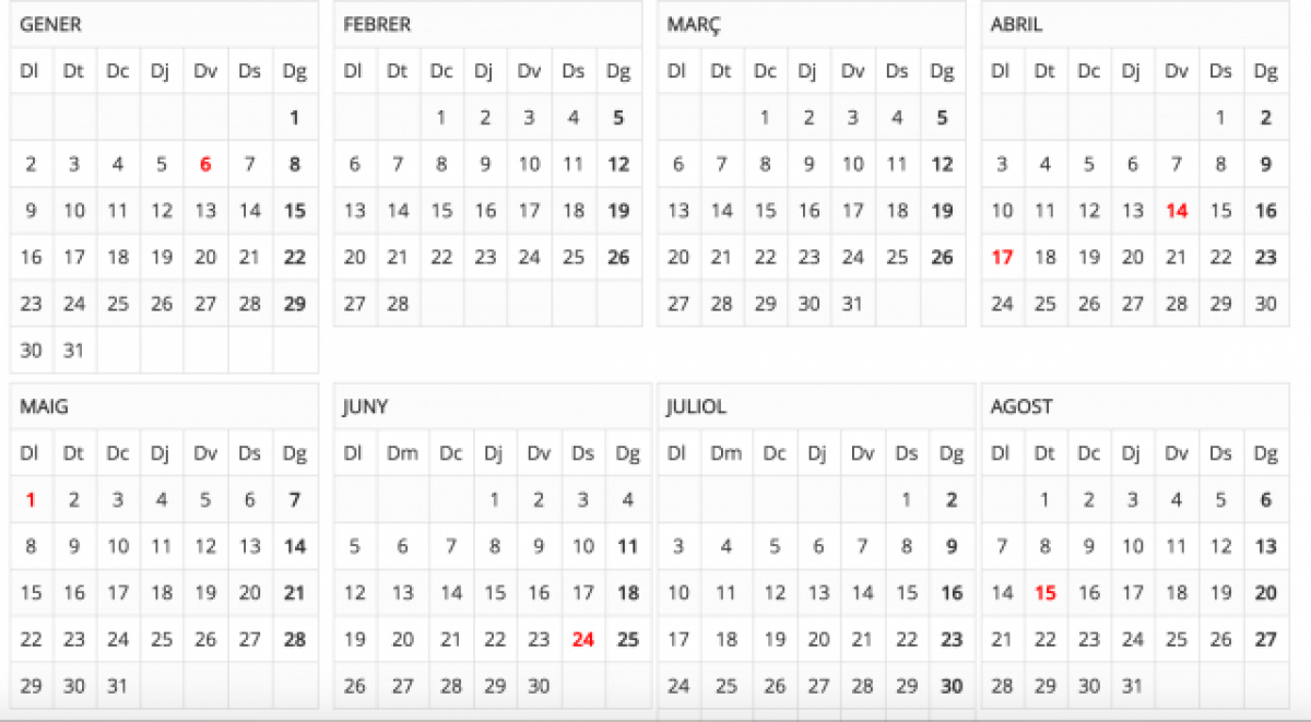 En total, habrá 13 festivos en el ámbito catalán, a los que los ayuntamientos podrán añadir dos fiestas locales.