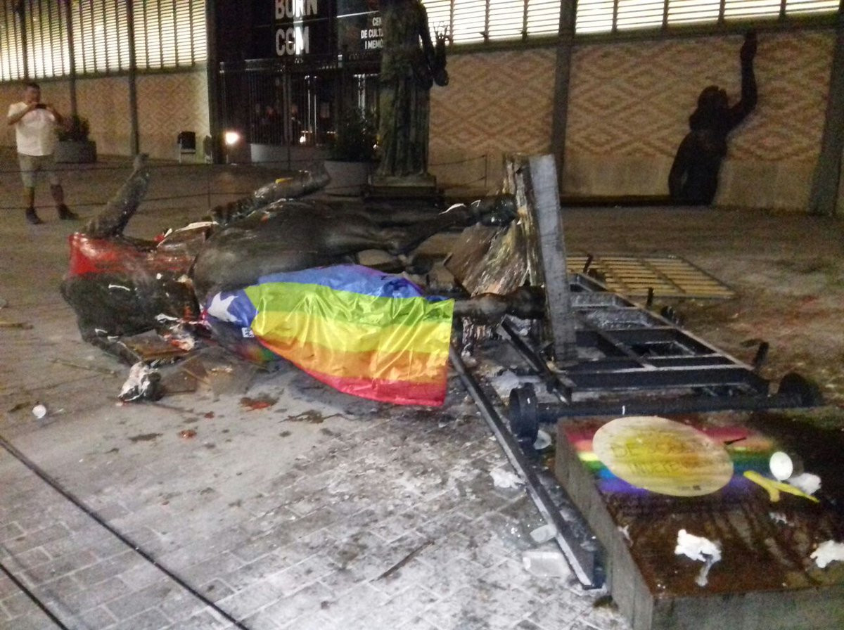 Derriban la estatua ecuestre de Franco colocada en el Born