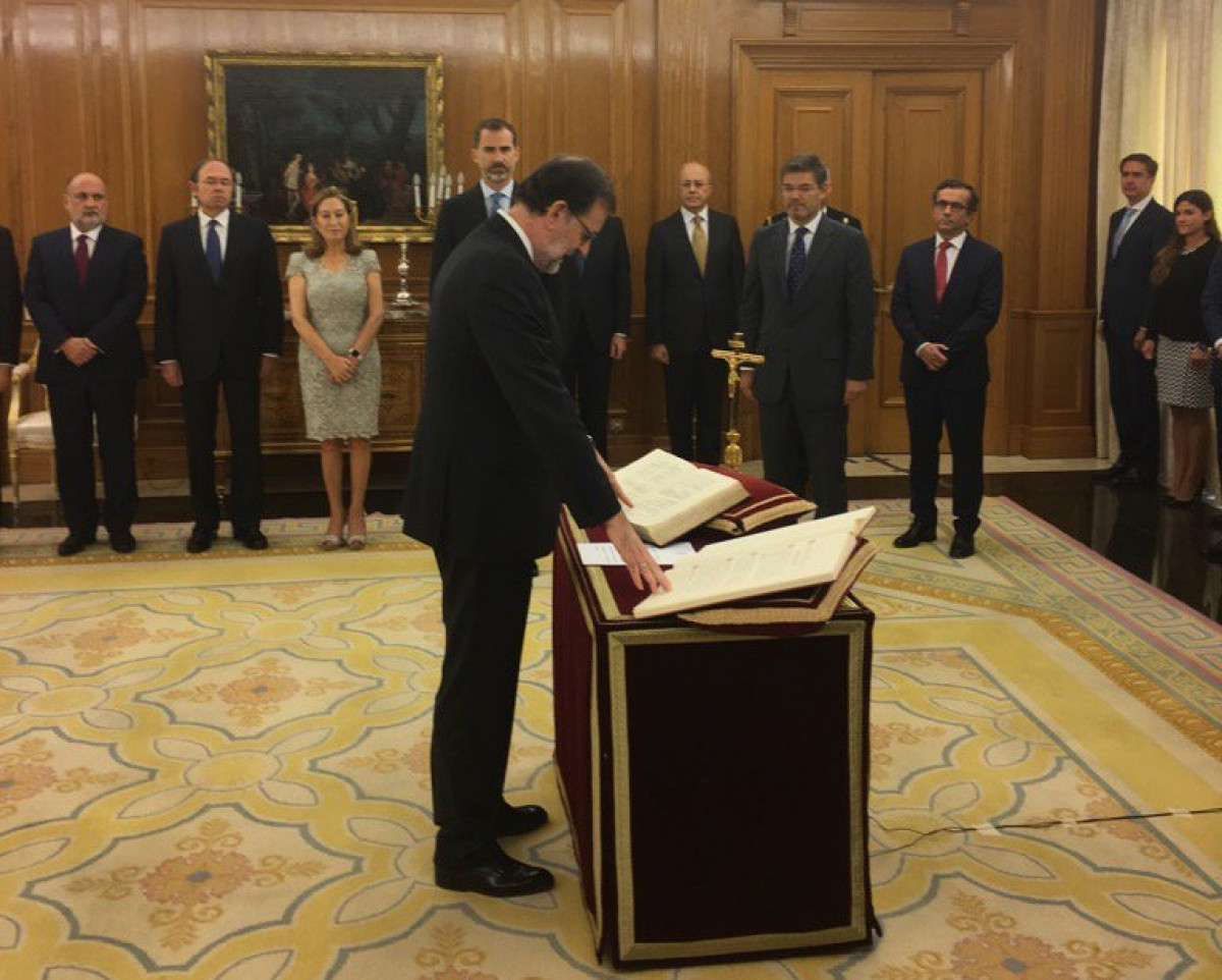 El líder del Partido Popular, Mariano Rajoy, ha jurado este lunes ante el Rey su cargo de presidente del Gobierno en el Palacio de la Zarzuela, un acto al que ha asistido el ministro de Justicia en funciones, Rafael Catalá, en su condición de notario mayor del Reino.