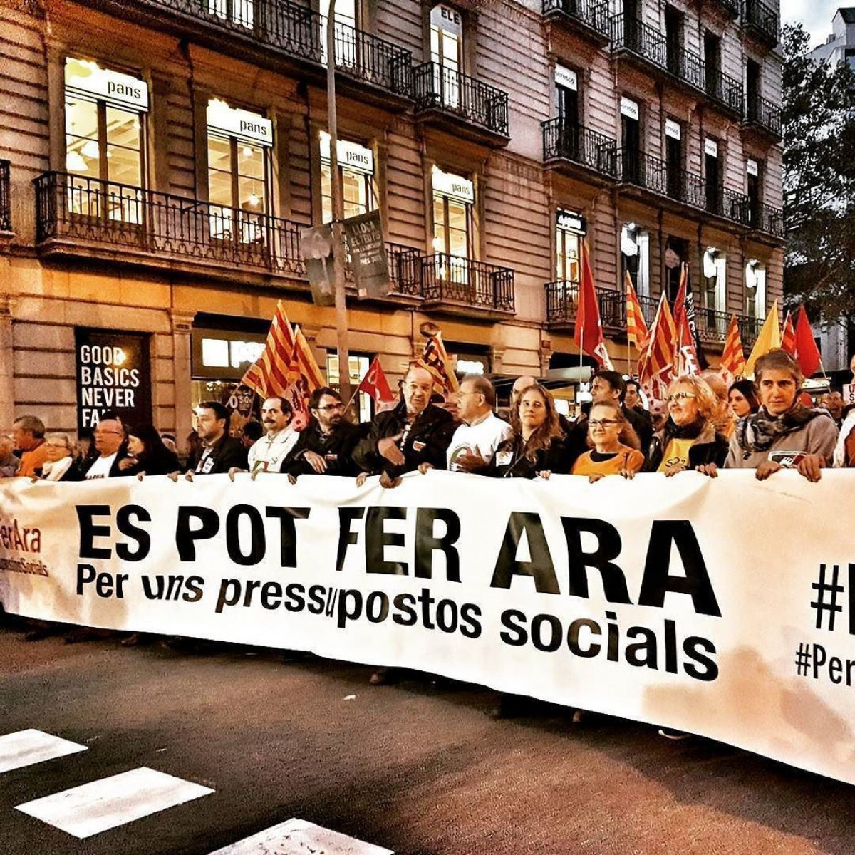 CatalunyaPress.- Unas 3.000 personas según la Guardia Urbana han acudido la tarde de este sábado a la manifestación convocada por sindicatos y entidades sociales de Catalunya por unos Presupuestos que impulsen las políticas sociales bajo el lema 'Es pot fer ara'