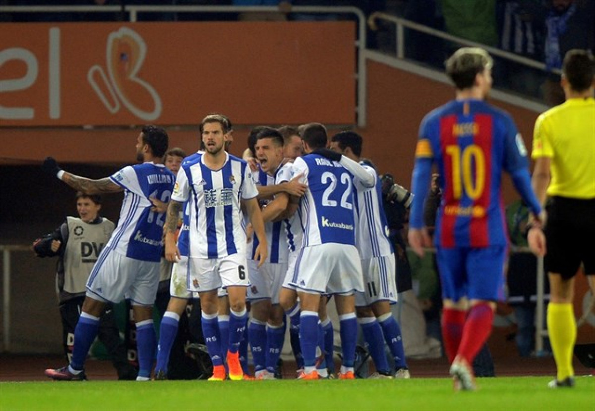 Tras el descanso, el Barça experimentó una ligera mejoría que Willian José se encargó de apagar. El delantero aprovechó los errores de la zaga culé para marcar de cabeza con cierta fortuna y la colaboración de un Piqué que no acertó a despejar, cuando los guipuzcoanos se encontraban con diez por la salida del campo de Oyarzabal para ser atendido.