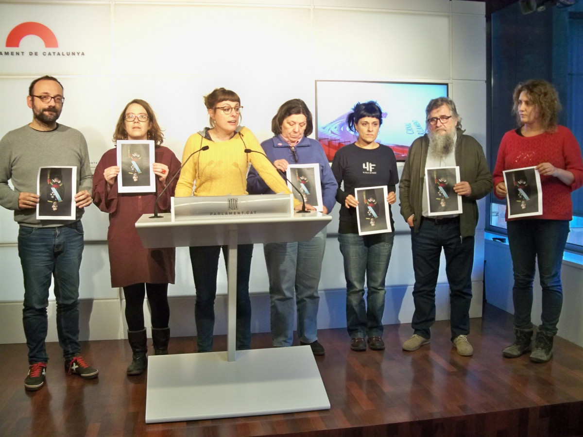En la comparecencia estaban los diputados Benet Salellas, Eulàlia Reguant, Mireia Vehí, Gabriela Serra, Anna Gabriel, Joan Garriga y la miembro del Secretariado Nacional Núria Gibert, que durante las declaraciones rompieron la fotocopia con la imagen de Felipe VI.