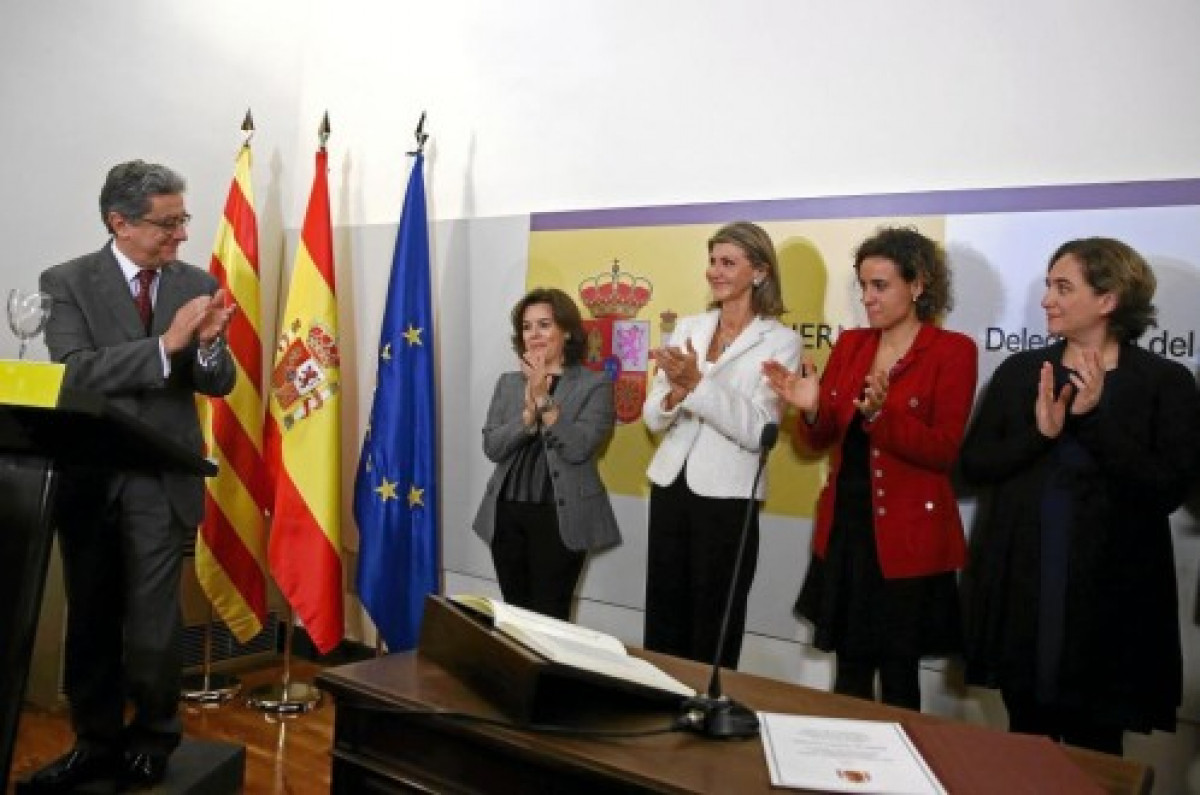 Soraya Sáenz de Santamaría, María Llanos de Luna, Dolors Montserrat y Ada Colau en la toma de posesión de Enric Millo