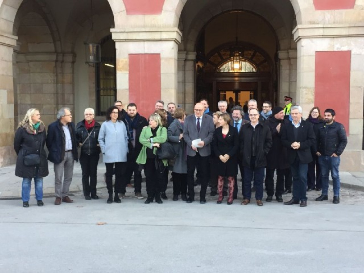Muchos diputados como Carme Forcadell, Marta Rovira, Jordi Turull o Lluís Llach han acompañado Corominas para mostrarle su apoyo en las puertas del Parlamento. Después se despidió de la presidenta del Parlamento y ha ido a pie, junto con diputados, hasta el TSJC.