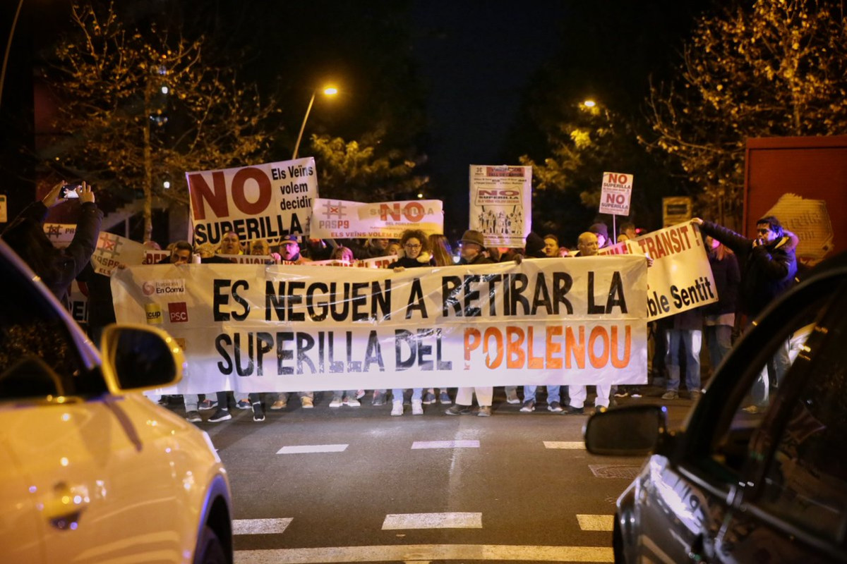 Un centenar de vecinos del Poblenou salen a la calle para protestar contra la supermanzana