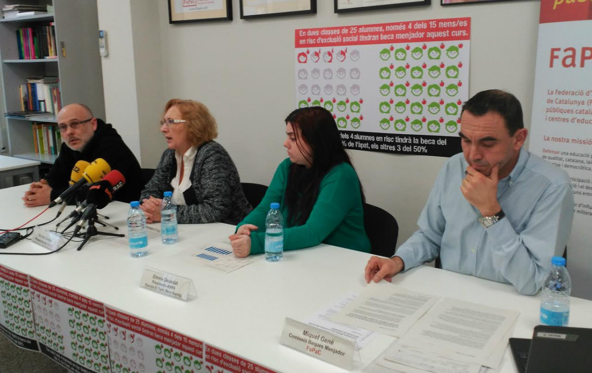 La Federación de Asociaciones de Padres y Madres de Alumnos de Catalunya (Fapac) ha pedido que los Presupuestos de la Generalitat incrementen hasta los 120 millones de euros la partida destinada a becas comedor.