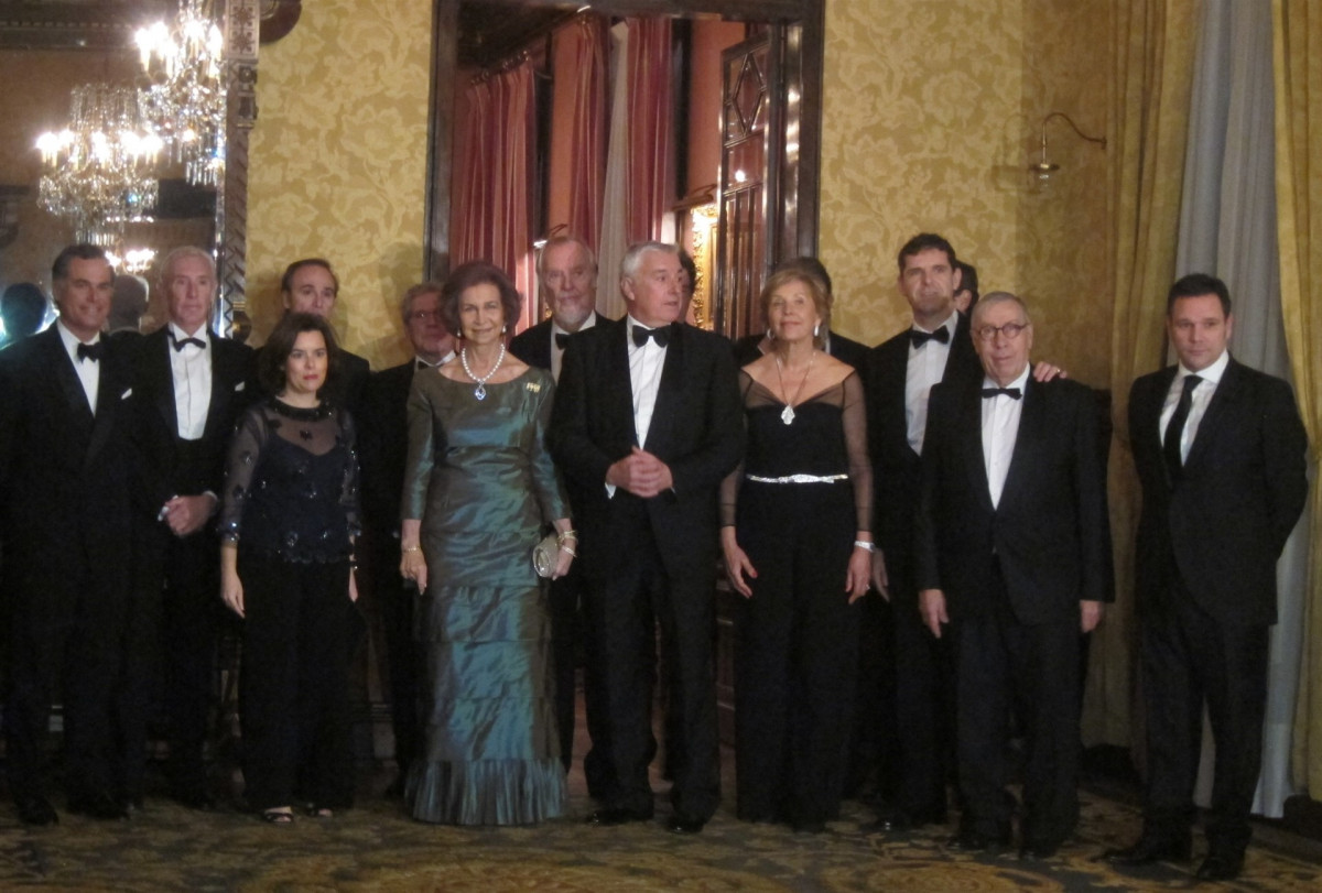 La Reina Sofía ha considerado el Gran Teatro del Liceu de Barcelona un "valioso patrimonio para Catalunya y toda España" tras recibir la Medalla de Oro del Cercle del Liceu en una cena de gala la noche de este lunes que inicialmente ha contado con la presencia de la vicepresidenta del Gobierno central, Soraya Sáenz de Santamaría.