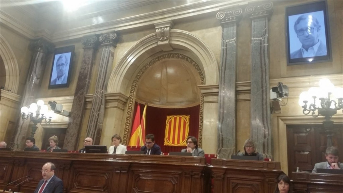 El Parlament se pone en pie para homenajear al exdiputado socialista Francesc Casares i Potau