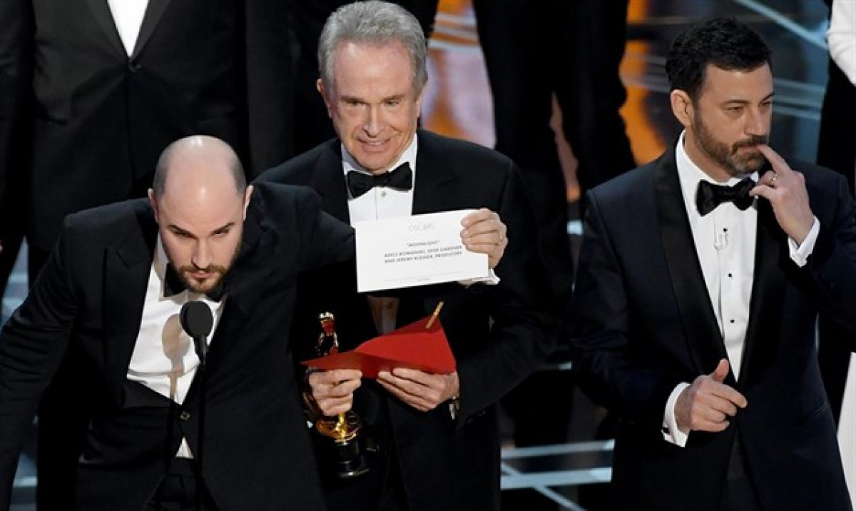 Los encargados de dar el premio a mejor película pasarán a la historia por el rocambolesco error: anunciaron a 'La La Land' y fue uno de los productores de la película quien acabó anunciando el verdadero ganador.