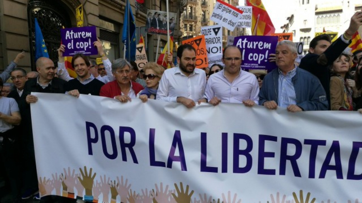 La marcha, convocada por Sociedad Civil Catalana se para denunciar el "golpe de estado institucional perpetrado" por los partidos independentistas, mediante un proceso soberanista que, advirtió, puede "romper la paz social".
