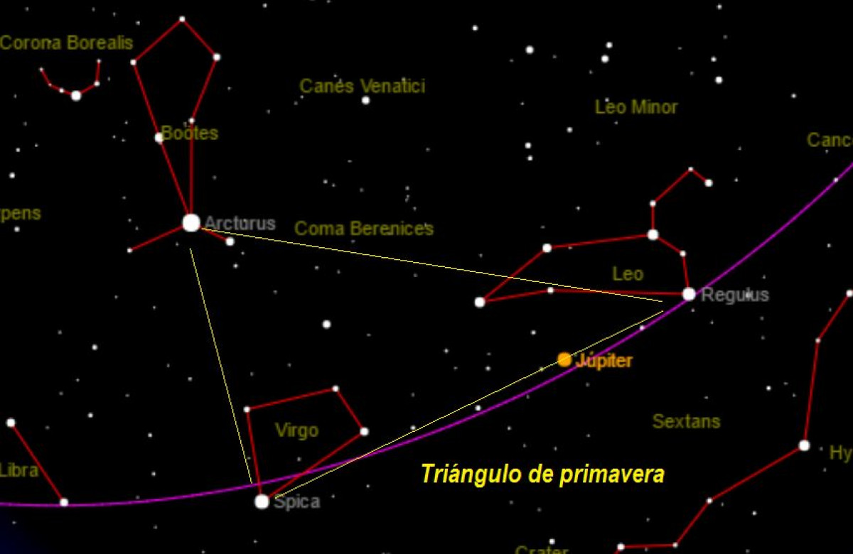 Las estrellas Spica, Régulus y Arturo forman el llamado triángulo de la primavera. Cuando vemos aparecer estas tres estrellas al anochecer es un indicativo de que estamos entrando en la primavera.