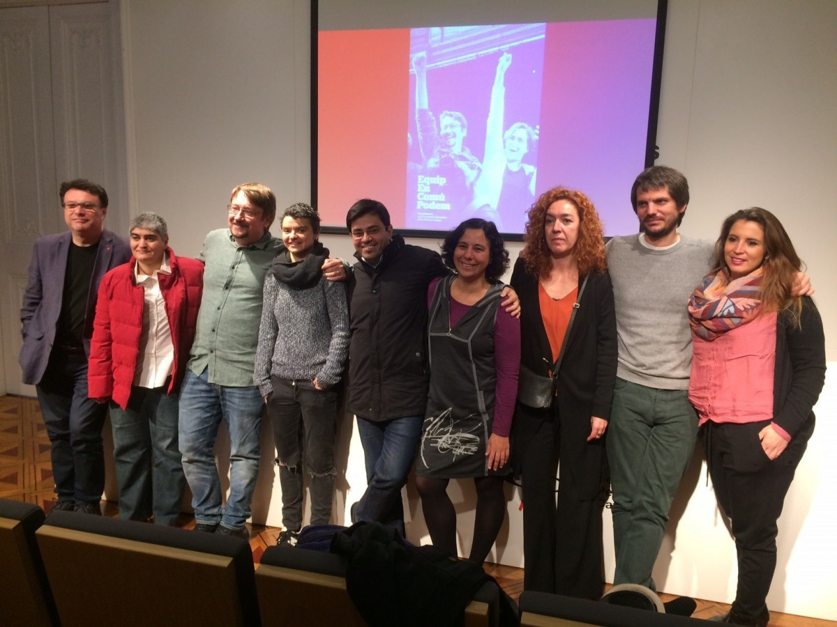En la lista de Domènech figuran todas las cúpulas de los partidos que lo constituirán menos Podemos. Unas 24 personas forman parte de esta lista "consensuada" por las cúspides de los partidos. Entre otros, están Gerardo Pisarello, Ernest Urstasun, Joan Josep Nuet, Eva Balart, Elisenda Alemany, Eloi Badía, Adrià Alemany y, como elemento "exótico" el "omnipresente" Vicenç Navarro, conocido por el "acomodaticio" que puede estar con el PSC, Podemos y ERC.