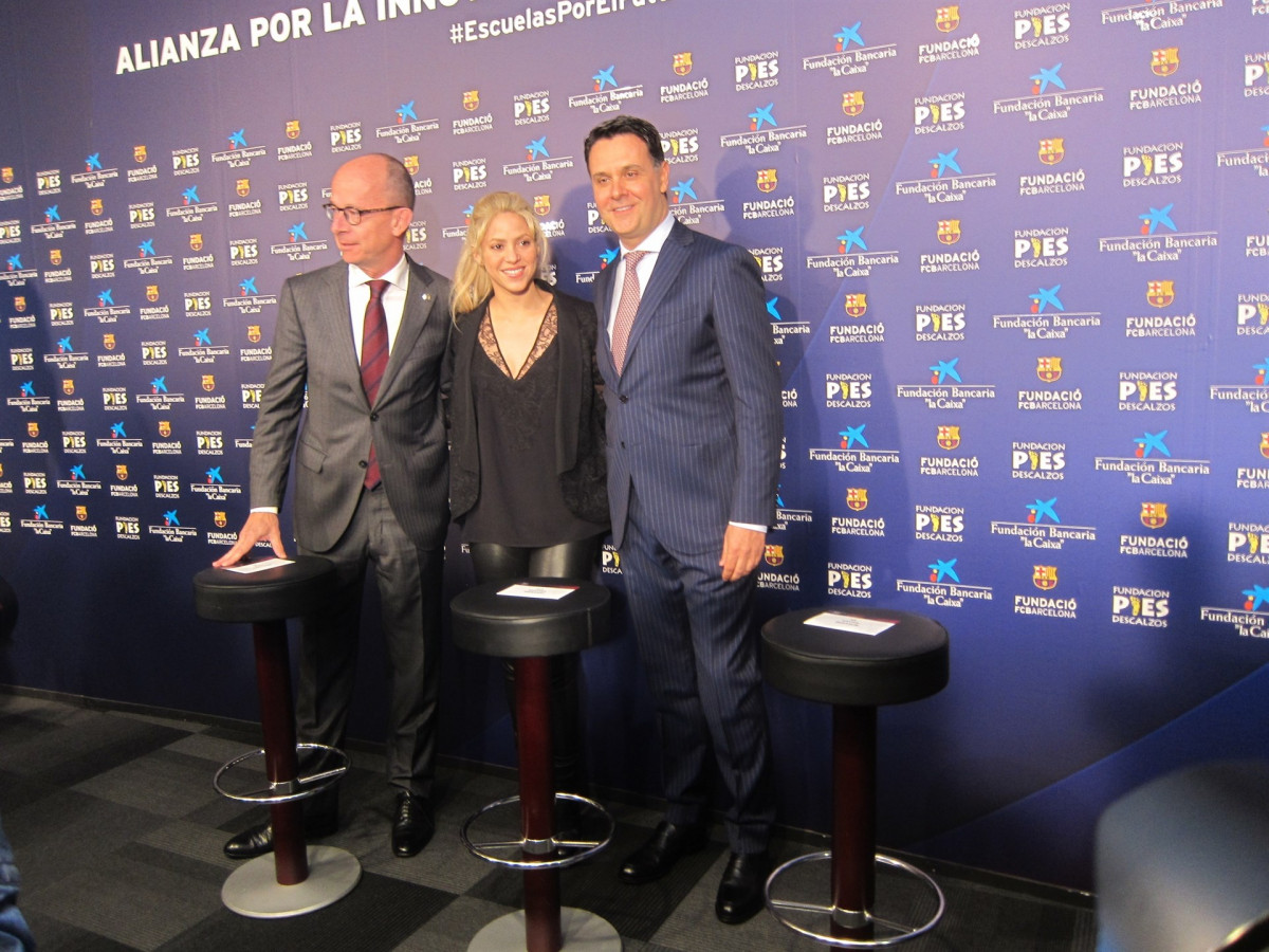En rueda de prensa, Shakira ha presentado el proyecto 'Alianza por la innovación educativa en Colombia', junto al vicepresidente del Barça, Jordi Cardoner, y el director del Área Comercial y Educativa de la Fundación Bancaria La Caixa, Xavier Bertolín.