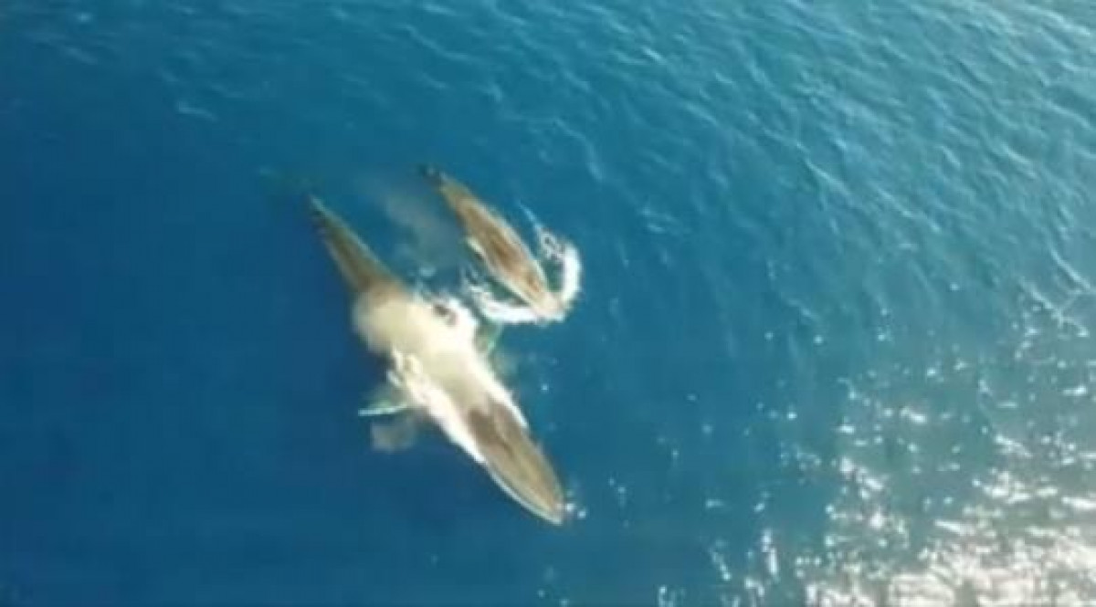 A menos de nueve millas náuticas de la costa, la Asociación Edmaktub ha captado con un dron la travesía de dos rorcuales en peligro de extinción.