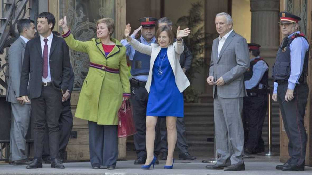 Miembros del Govern, de las entidades soberanistas, diputados de JxSí, CUP, SíQueEsPot, y concejales del Ayuntamiento de Barcelona han recibido a Forcadell y Simó tras declarar ante el juez por un presunto delito de desobediencia al haber permitido votar resoluciones soberanistas.