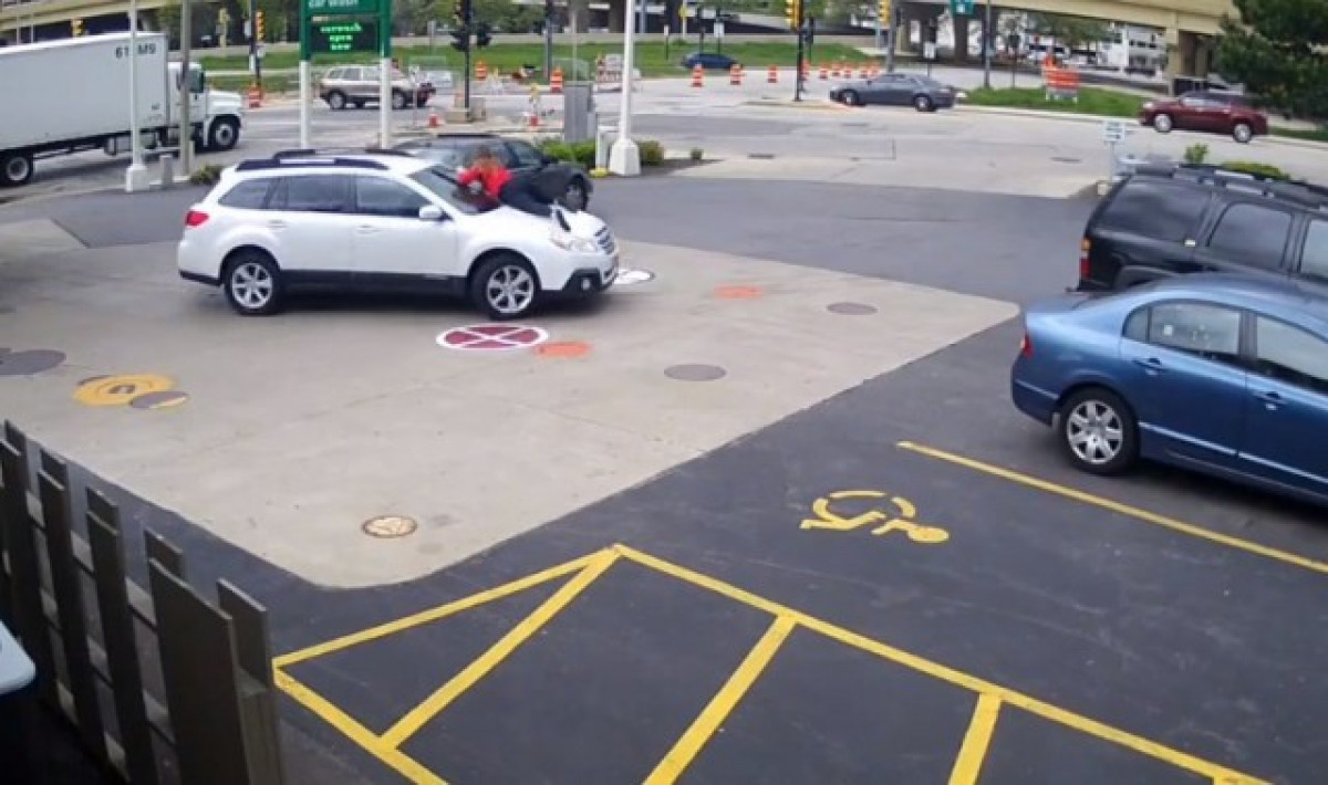 Una mujer de Milwaukee, Melissa Smith, evitó el robo de su coche saltando sobre el capó al ver que un ladrón intentaba robarlo mientras ella pone gasolina. Las imágenes grabadas por la cámara de seguridad de la gasolinera son espectaculares.