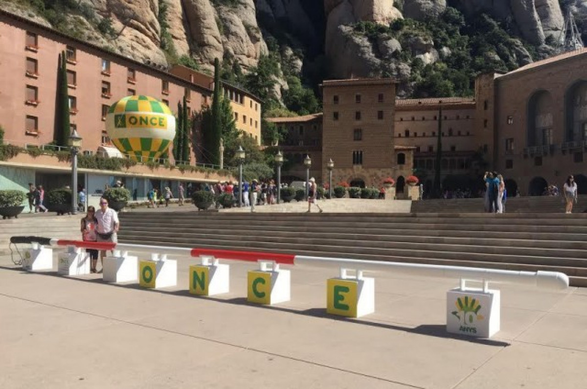 El Día de la Gran Familia de la ONCE en Catalunya ha girado en torno a este homenaje con un bastón gigante de casi 20 metros, probablemente el más grande del mundo, de color rojo y blanco, los colores que los identifican.