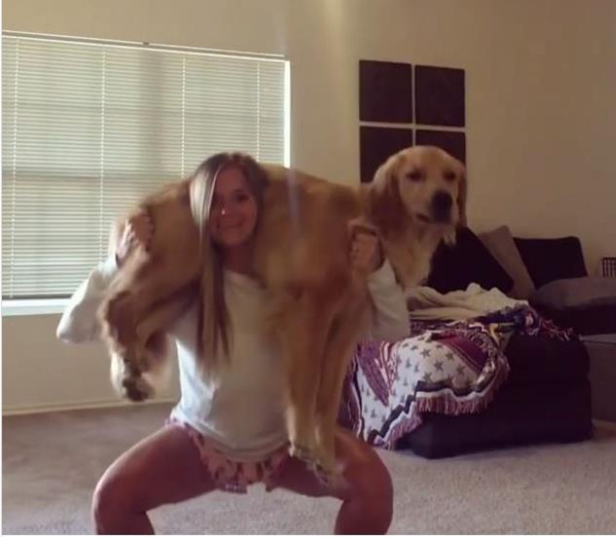 Con el hashtag #squatyourdogchallenge ha sido bautizado el nuevo reto de Instagram. El dueño hace sentadillas mientras levanta a su perro, en vez de utilizar pesas. Alysa Greene es la joven que inventó la nueva manera de hacer ejercicio. Ella publicó un vídeo en sus redes sociales, y este se hizo viral en Estados Unidos.