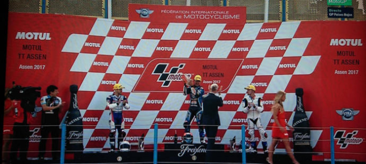 El piloto catalán de Moto3, Arón Canet, ha conseguido la segunda victoria de la temporada en el Circuito de Assen, en Holanda en un final de foto finish con el italiano, Romano Fenati.
