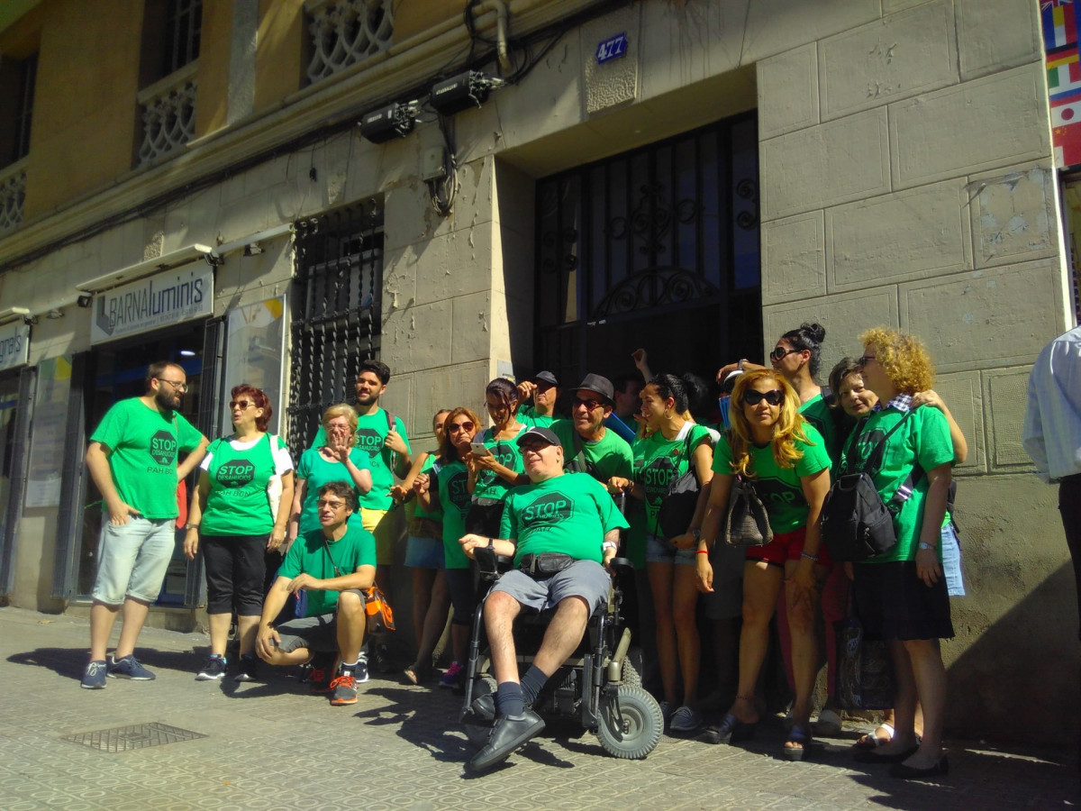 La Plataforma de Afectados por la Hipoteca (PAH) ha ocupado siete viviendas del bloque del número 477 de la calle Aragó, en el distrito del Eixample de Barcelona. En el edificio ha alojado a 12 personas -seis adultos y seis menores- en situación vulnerable y que fueron desahuciadas.