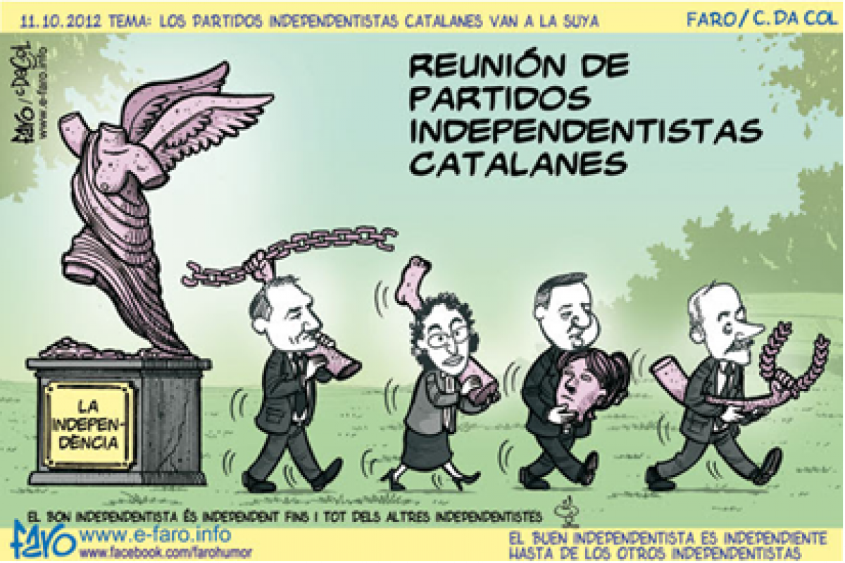 Ahora bien, frente a nuestro Estado social y democrático de Derecho en el que “todos los ciudadanos y poderes públicos están sujetos a la Constitución y al resto del ordenamiento jurídico”, los líderes de algunos partidos políticos de Cataluña (ERC, CDC-PDE-Cat y CUP-CC) están utilizando su escuálida mayoría en las instituciones de autogobierno para saltarse a la torera el ordenamiento constitucional y el Estado de derecho. Por eso, empleando toda suerte de ardides y por la vía de los hechos consumados, pretenden convocar un referéndum unilateral y proclamar una república independiente, liquidando así la soberanía nacional, que reside en todos los españoles, el pluralismo político y la división de poderes en Cataluña. En su perversa concepción de la democracia, estos partidos rechazan las normas aprobadas en aquellas instituciones del Estado donde ellos no tienen mayoría y desacatan las resoluciones de los Tribunales, contrarias a sus intereses partidistas.