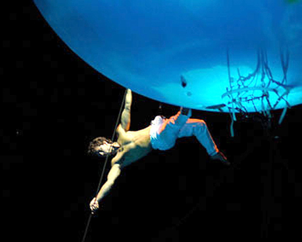 El acróbata realizaba una performance en la que se ha introducido en una urna de metacrilato que ha sido izada por una grúa hasta una altura aproximada de más de 20 metros. Iba sujeto a un arnés a la altura de la cadera que, por causas que están siendo investigadas, se ha roto o desprendido.