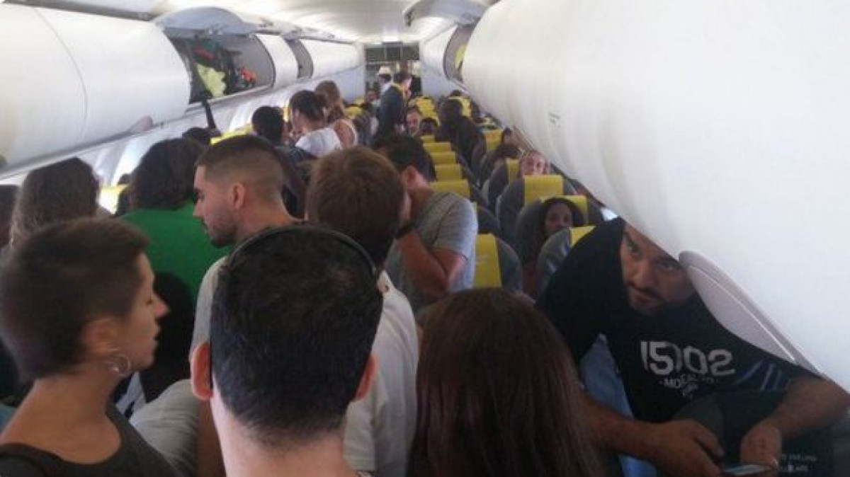Los pasajeros se han levantado de sus asientos en señal de protesta por la expulsión de un senegalés, según han explicado fuentes de la areolínea Vueling y del grupo de pasajeros amotinados. El incidente ha ocurrido en un avión que tenía previsto despegar de Barcelona a las 16.30 horas de la tarde del sábado, en el que viajaba un hombre senegalés esposado, acompañado de dos policías.
