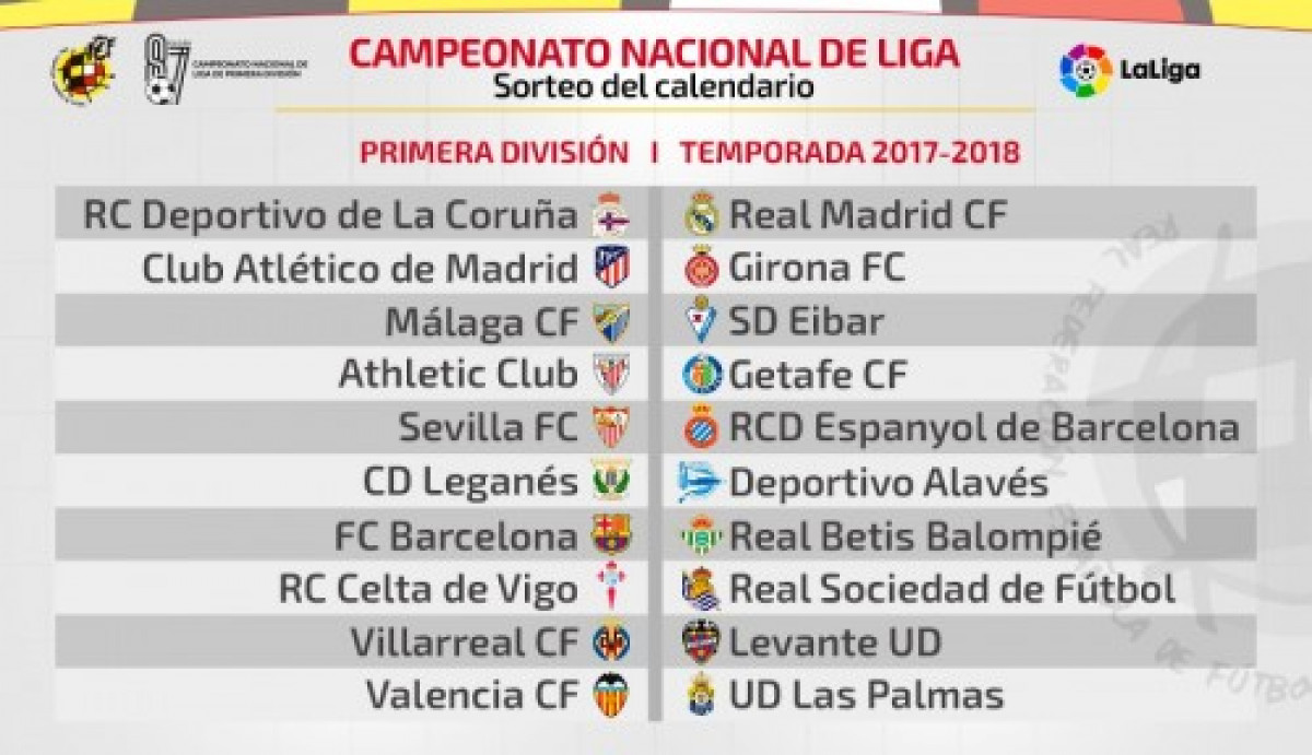 El sorteo del calendario de LaLiga Santander 2017-18 ha arrancado este mediodía en la Federación Española de Fútbol en Las Rozas. El calendario más polémico en mucho tiempo tras el arresto de Ángel María Villar. Sin duda, el que más ha dado que hablar. El calendario de segunda división se hará público durante la tarde de este viernes.
