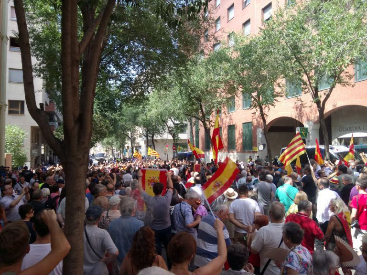 La concentración organizada por la CUP ante el cuartel de la Guardia Civil de la calle de Travessera de Gràcia de Barcelona contra las citaciones del cuerpo policial a altos cargos del Govern ha encarado a independentistas y organizaciones españolistas.