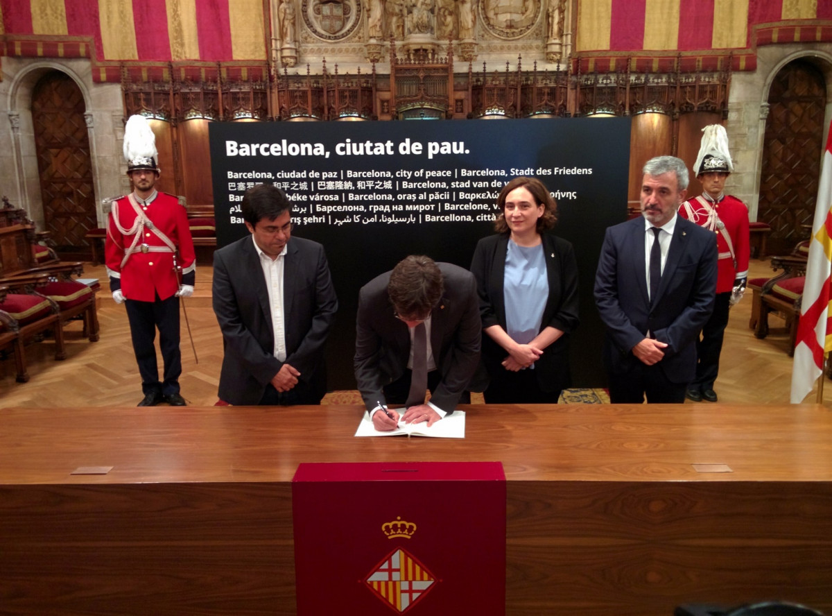 Puigdemont y Colau convocan una manifestación por la paz para el sábado 26