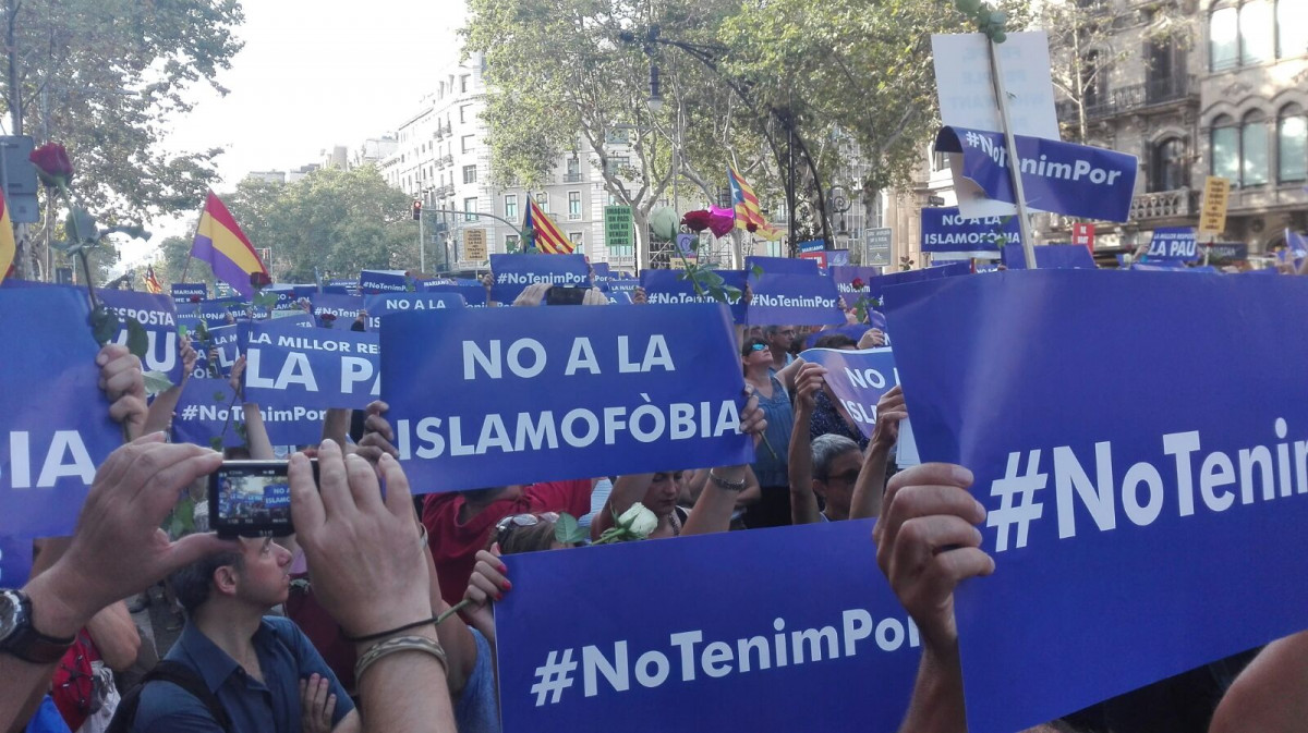 La portavoz de la entidad Ibn Batuta, Míriam Hatibi ha continuado ante una Plaza catalunya ya llena de gente: "No tenemos miedo porque sabemos que el amor acaba triunfando sobre el odio". Y ha terminado con la lectura de los versos de Federico García Lorca y de Josep Maria de Sagarra.