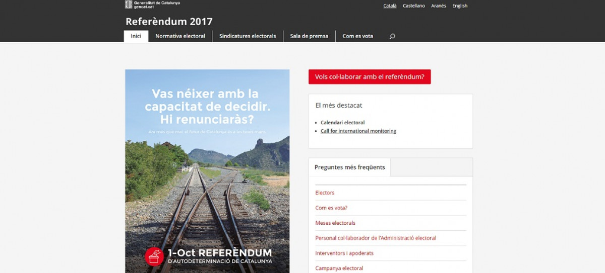 El Gobierno de Puigdemont también reclama en esa página voluntarios para ejercer como personal colaborador de la administración electoral. Precisan que serán elegidos de entre los inscritos en el censo y que las personas seleccionadas serán nominadas como: representantes de la Administración, coordinadores electorales municipales, coordinadores electorales comarcales y agentes electorales.
