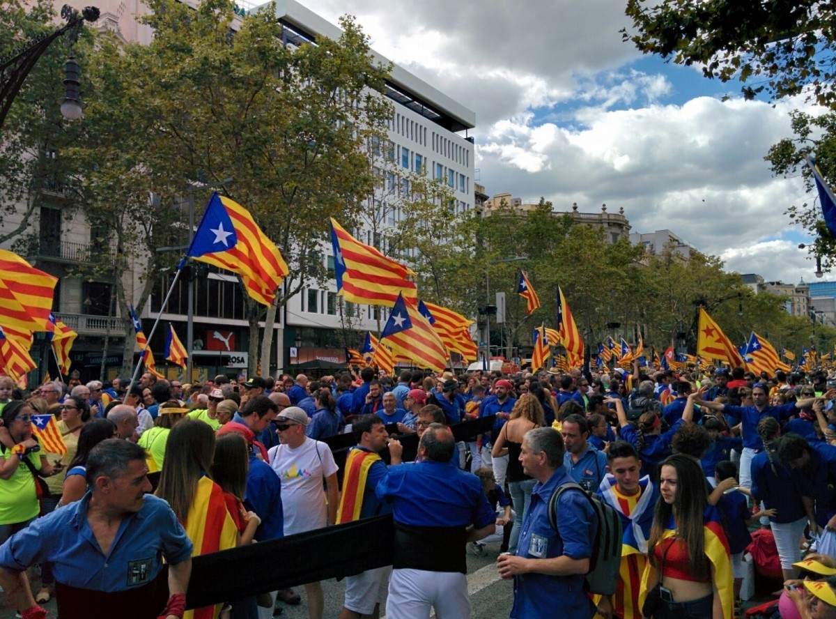 Centenares de miles de personas han llenado el Passeig de Gràcia y la calle Aragó de Barcelona este lunes 11 de septiembre, Diada de Catalunya, en la manifestación independentista organizada por la ANC, con el apoyo de Òmnium y de la AMI, que se ha visto marcada por la convocatoria del referéndum del 1 de octubre, sobre el que los manifestantes han expresado su intención de participar: "Votaremos", han entonado en varias ocasiones.