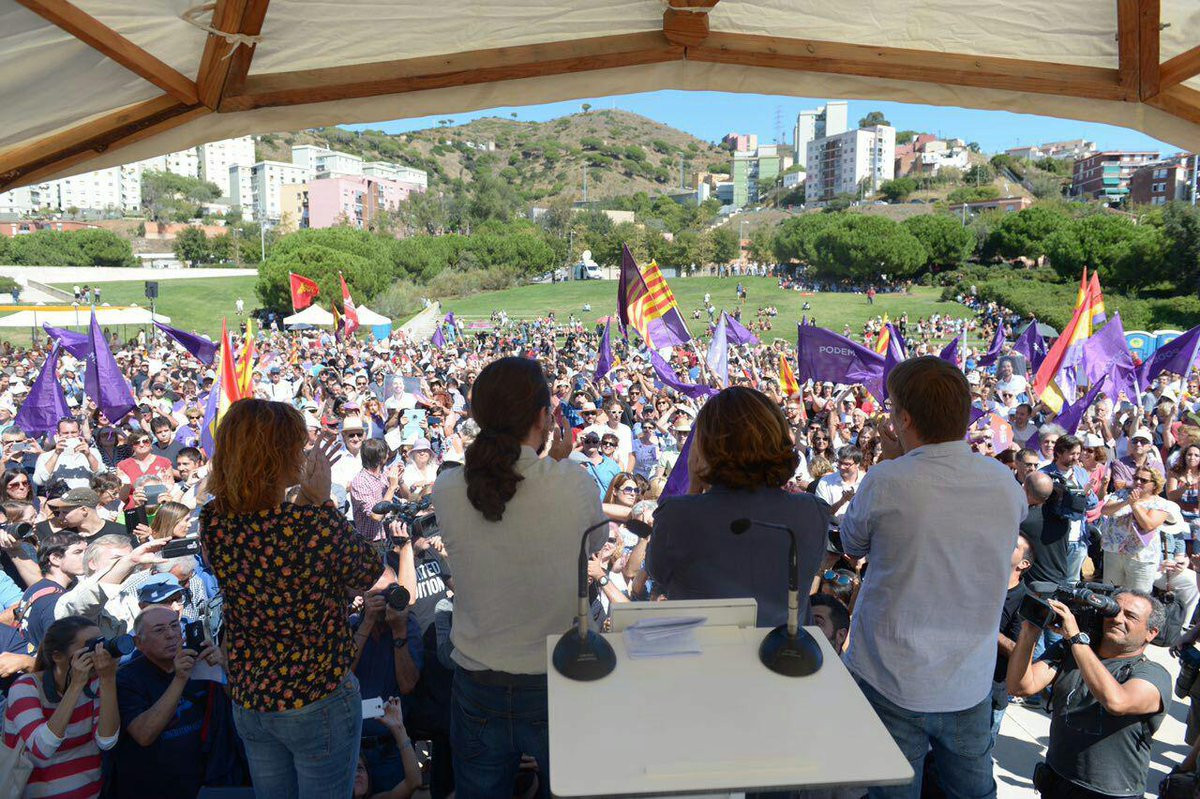 Elisenda Alemany, Pablo Iglesias, Ada Colau y Xavier Domènech en el acto de CatComú por la Diada.