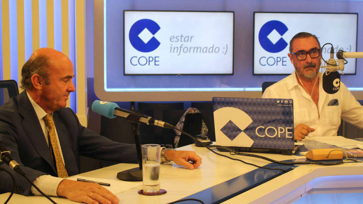 Luis De Guindos durante su entrevista en la Cadena COPE con Carlos Herrera.