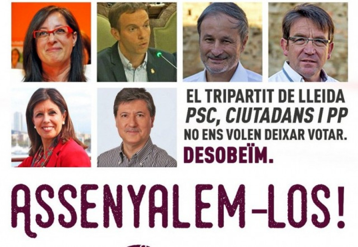 El cartel, difundido por las redes sociales de Arran Lleida, muestra las fotos de los concejales que están trabajando para impedir la celebración del referéndum ilegal.