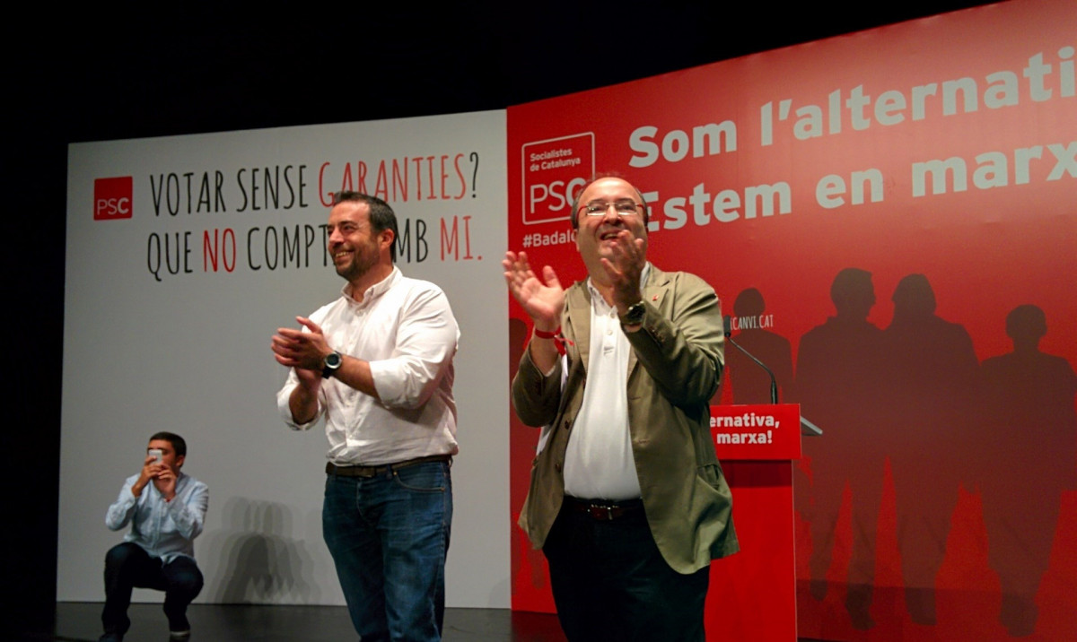 Miquel Iceta este sábado, en Badalona, con Álex Pastor.