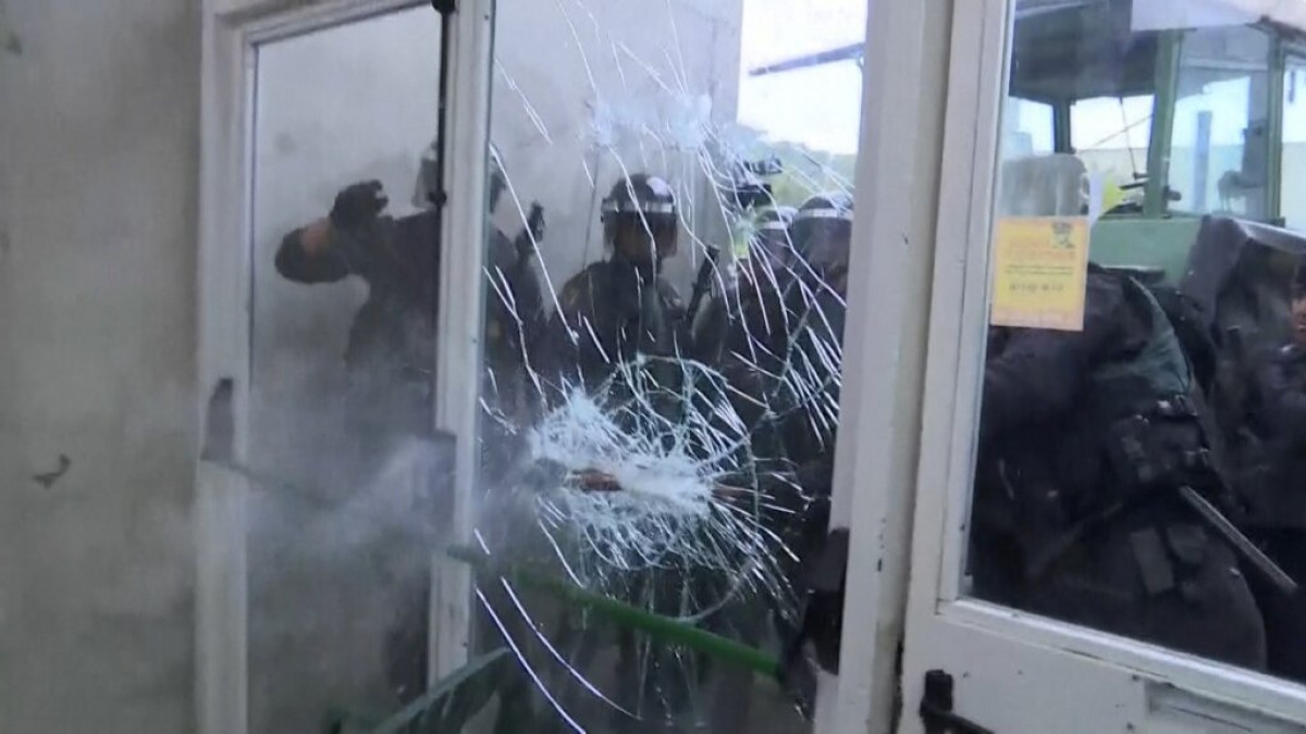 Después de varias cargas contra los vecinos que bloqueaban la entrada del pabellón desde la madrugada --junto a un tractor que estaba estacionado también en la entrada-- y tras romper la puerta de cristal, los policías han conseguido acceder al interior de las instalaciones, y media hora más tarde han salido con las urnas requisadas.