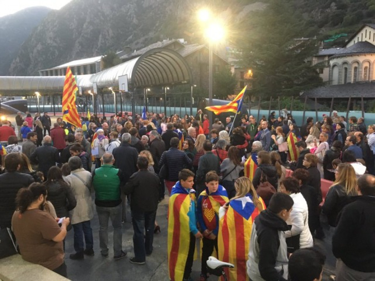 Domingo 1 de octubre, por la noche, más de 500 personas se reunieron en la plaza del Pueblo de Andorra la Vella (cifra del Diario de Andorra) para protestar contra la actuación de las fuerzas de seguridad españolas en Catalunya.
