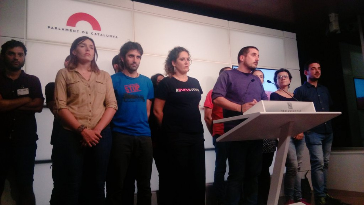Los diputados de la CUP tras la suspensión de la proclamación de independencia en el Parlament.