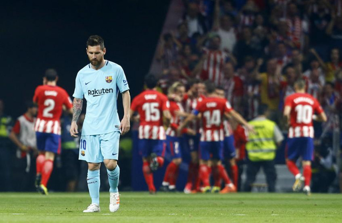 Messi, alicaído ante el gol del Atleti.