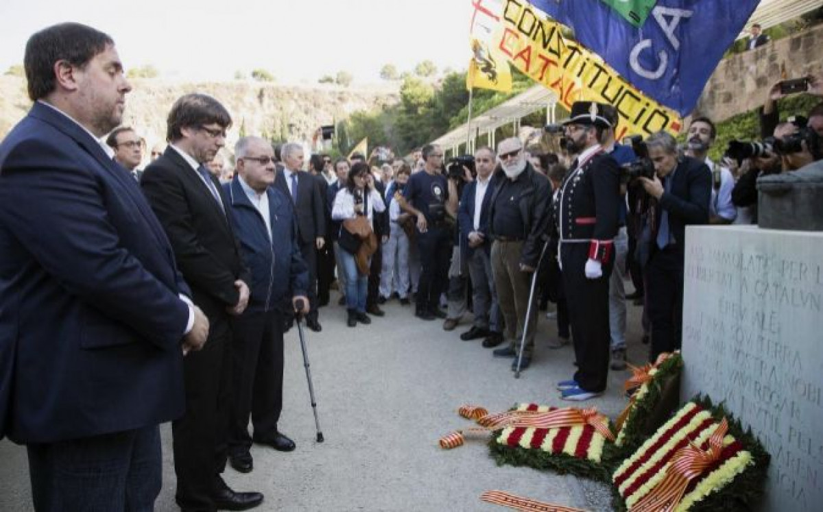 Puigdemont y Junqueras ante la tumba de Lluís Companys