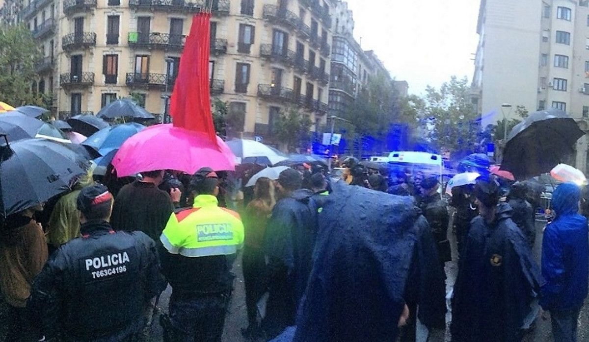 Los manifestantes han cortado el cruce de las calles Mallorca-Llúria, y los antidisturbios de los Mossos han formado un cordón para proteger la institución.