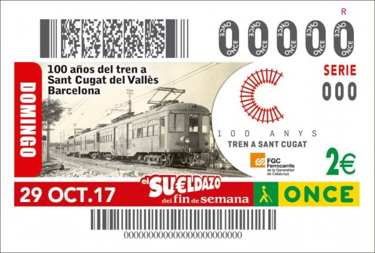 El centenario del tren en Sant Cugat del Vallès protagoniza el cupón de la ONCE del domingo 29 de octubre. Cinco millones y medio de cupones llevarán este aniversario por todo el Estado.