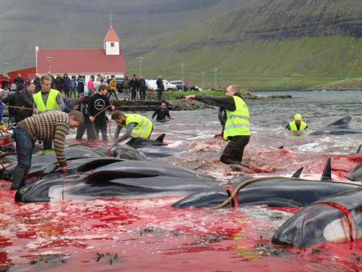 Activistas de Sea Shepherd Global han publicado imágenes del tradicional ‘grindadrap’ de las Islas Feroe danesas, en las que se ven calderones -o ballenas piloto- y delfines sacrificados.
