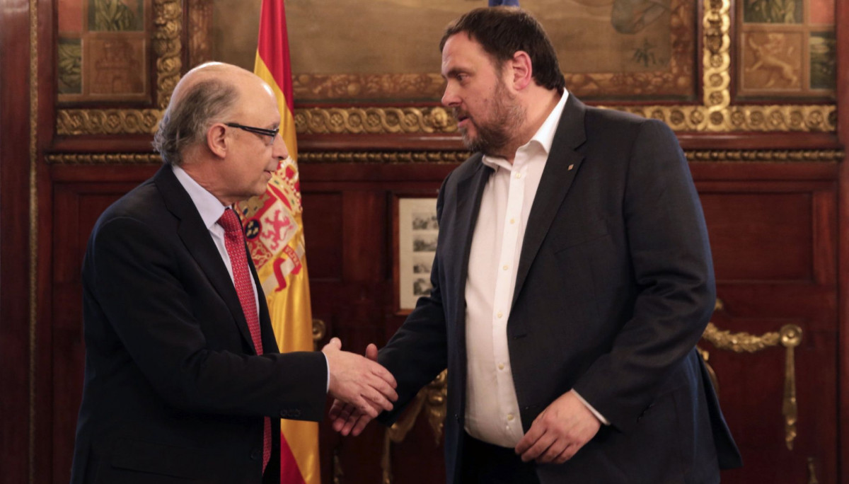 El Ministro Montoro señando acuerdos de financiación con Oriol Junqueras.